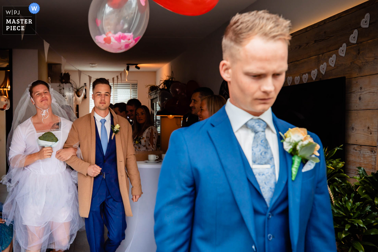 Wij hadden een kleine vertraging waardoor ons foto moment voor het trouwen iets korter werd. Freek ging daar prima mee om en hield ons ook rustig.